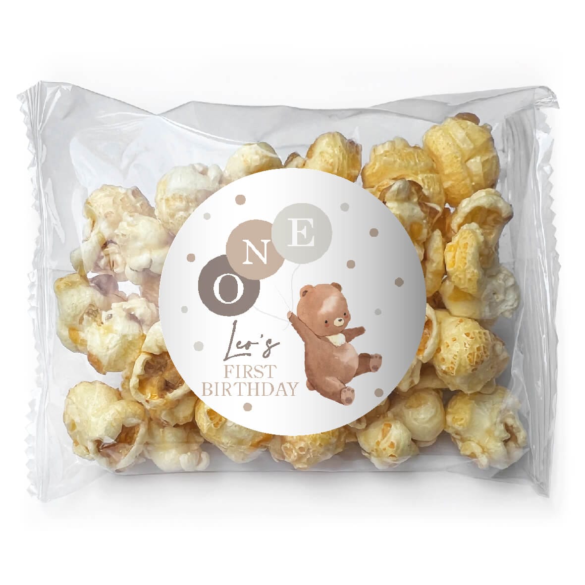 You can add any wording you like to your popcorn label design. You can also change colours at no extra cost - just leave us a note at checkout. Your artwork will be designed by a qualified graphic designer who will ensure they look absolutely perfect.
