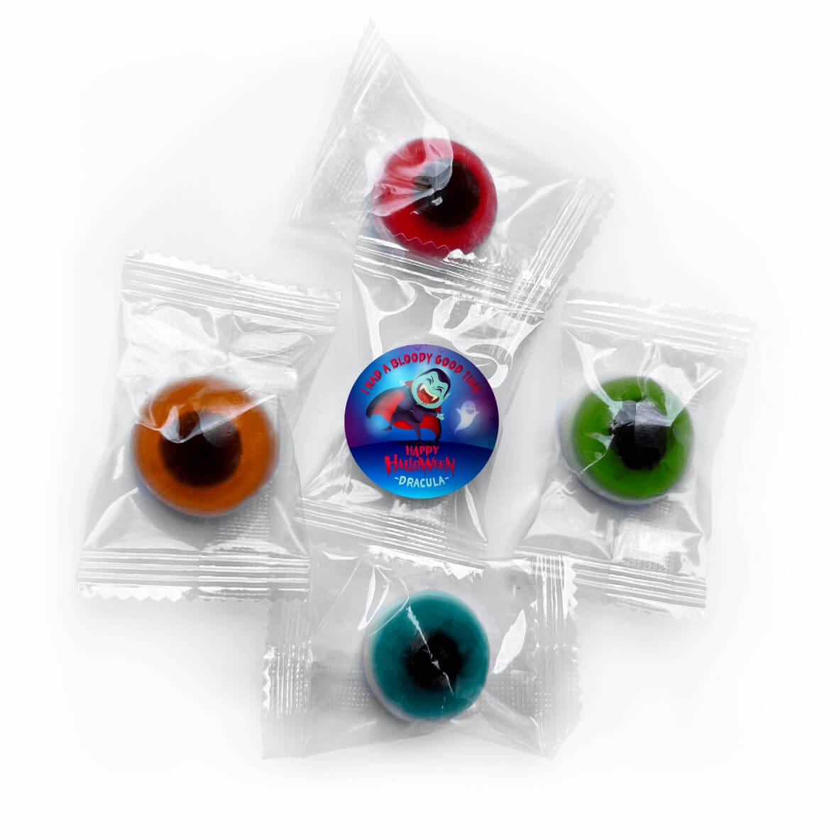 Sink your teeth into these personalised gummy lolly eyeballs.