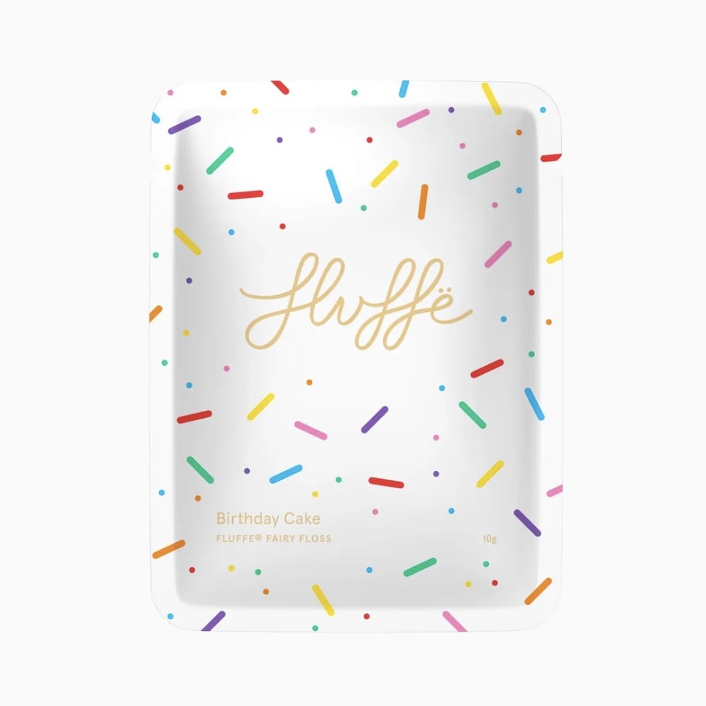 Plush vanilla cake floss dotted with crunchy rainbow speckles - make a wish!