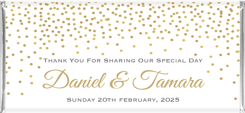 You can add any wording you like to the front and back of any of our chocolate bar designs. Your bars will be designed by a qualified graphic designer who will ensure they look absolutely perfect.