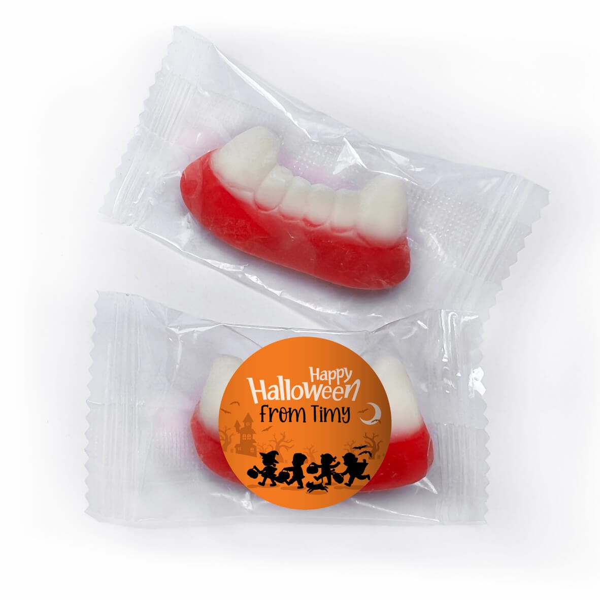 Sink your teeth into these personalised Vampire fang gummy lollies!