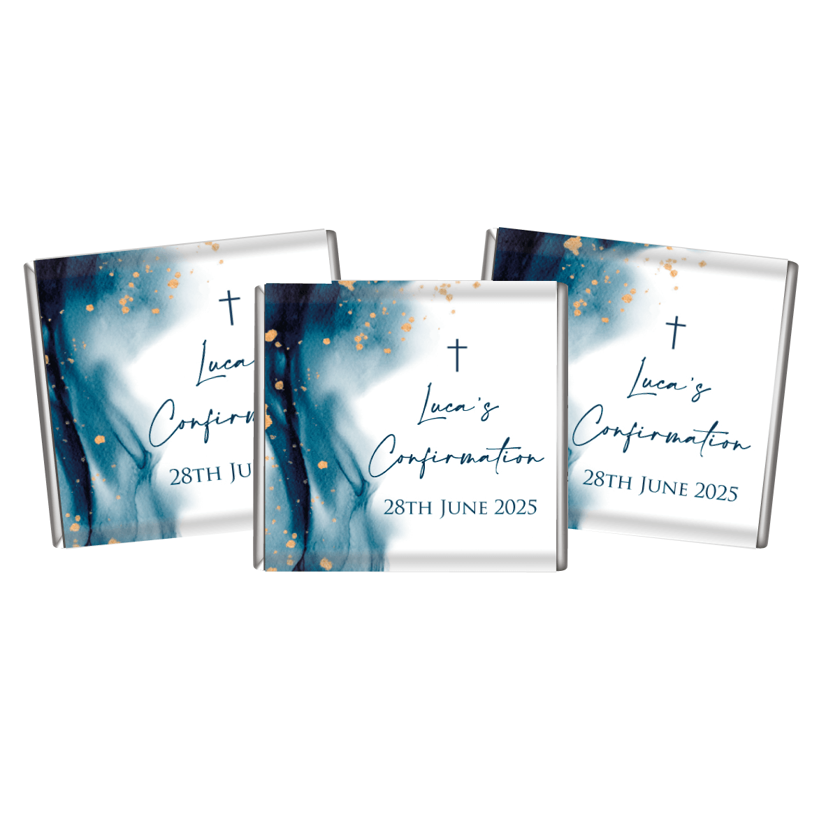 Navy & Gold Watercolour & Cross Custom Chocolate Bars