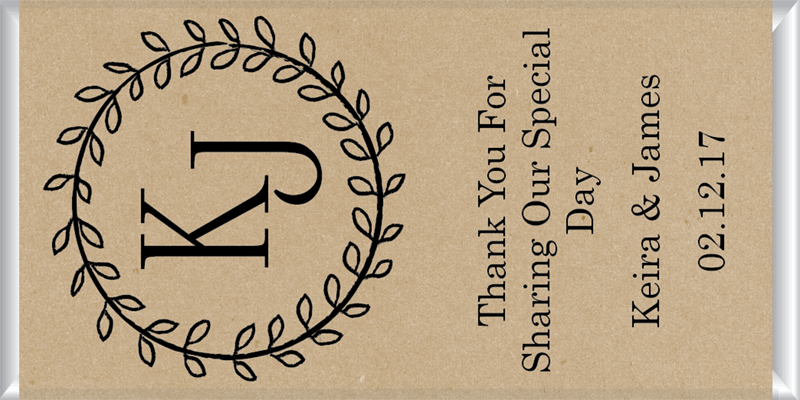 Personalised Chocolate Bar Favours - Initials in Wreath Kraft Paper Design