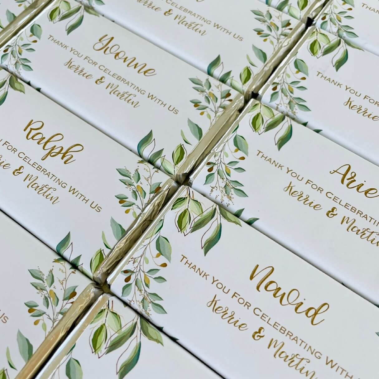 - Add guest names for use as place cards for just 50¢ cents extra per bar
