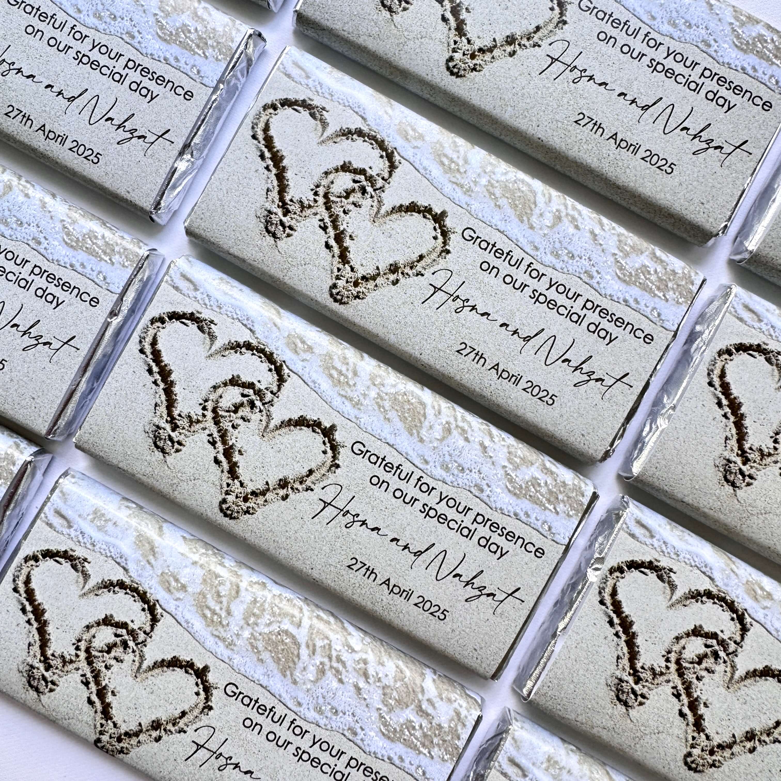 Completely happy with the purchase of the personalised chocolate favors - Hearts in Sand.