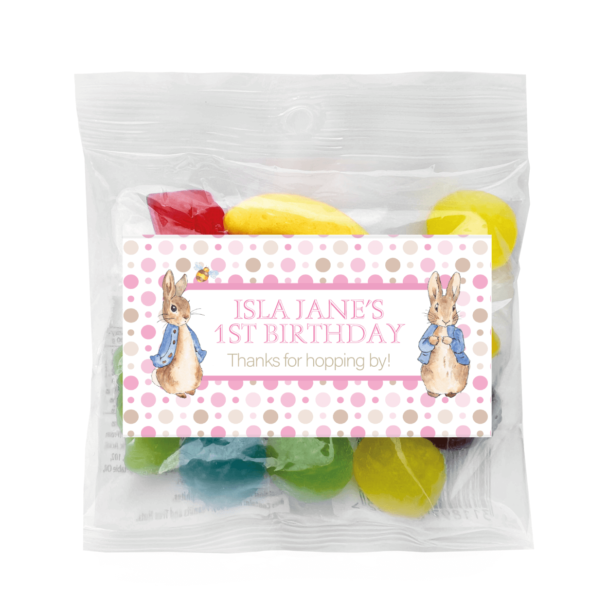 Pink Peter Rabbit Theme Personalised Lolly Bags
