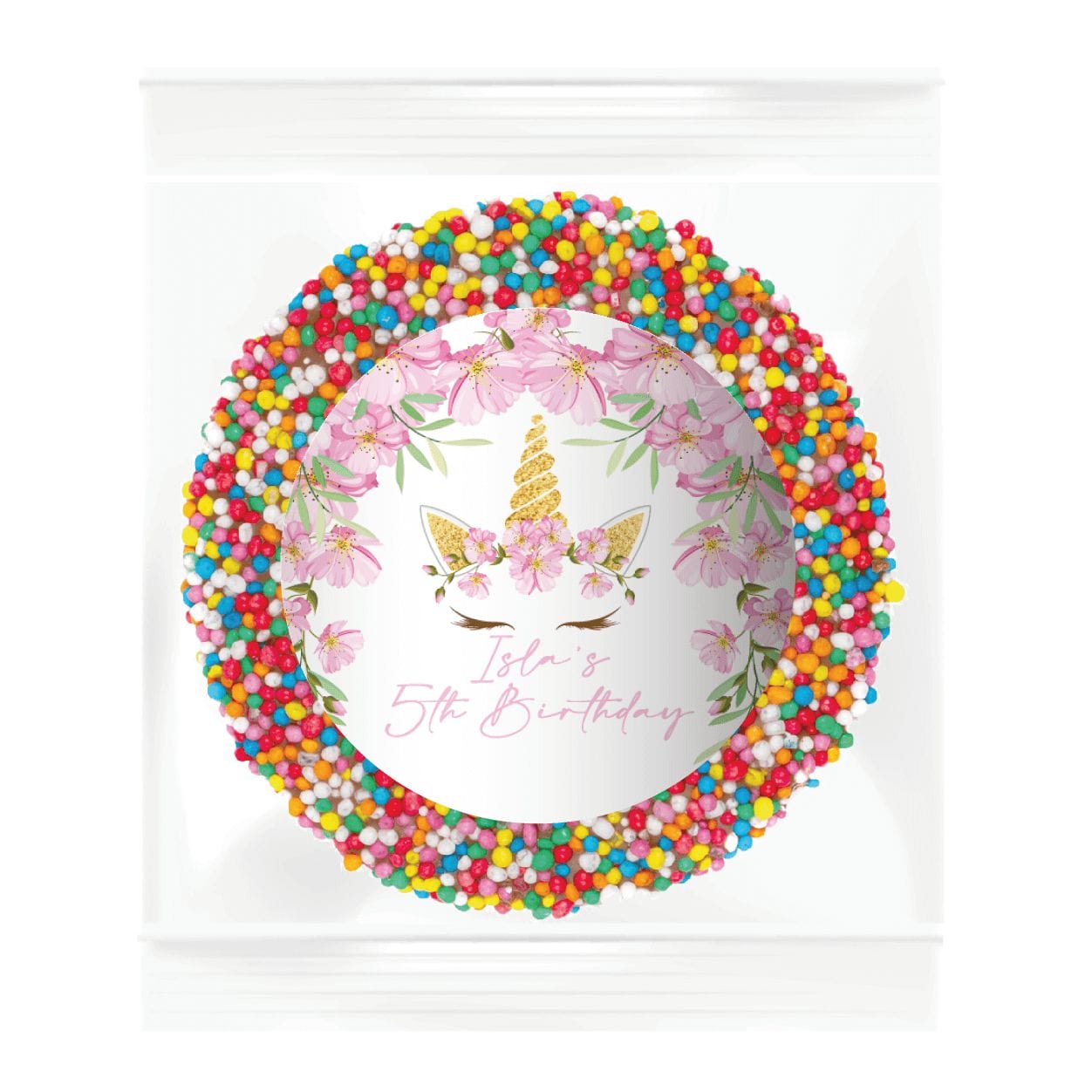 Pink Floral Unicorn Personalised Giant Chocolate Freckle