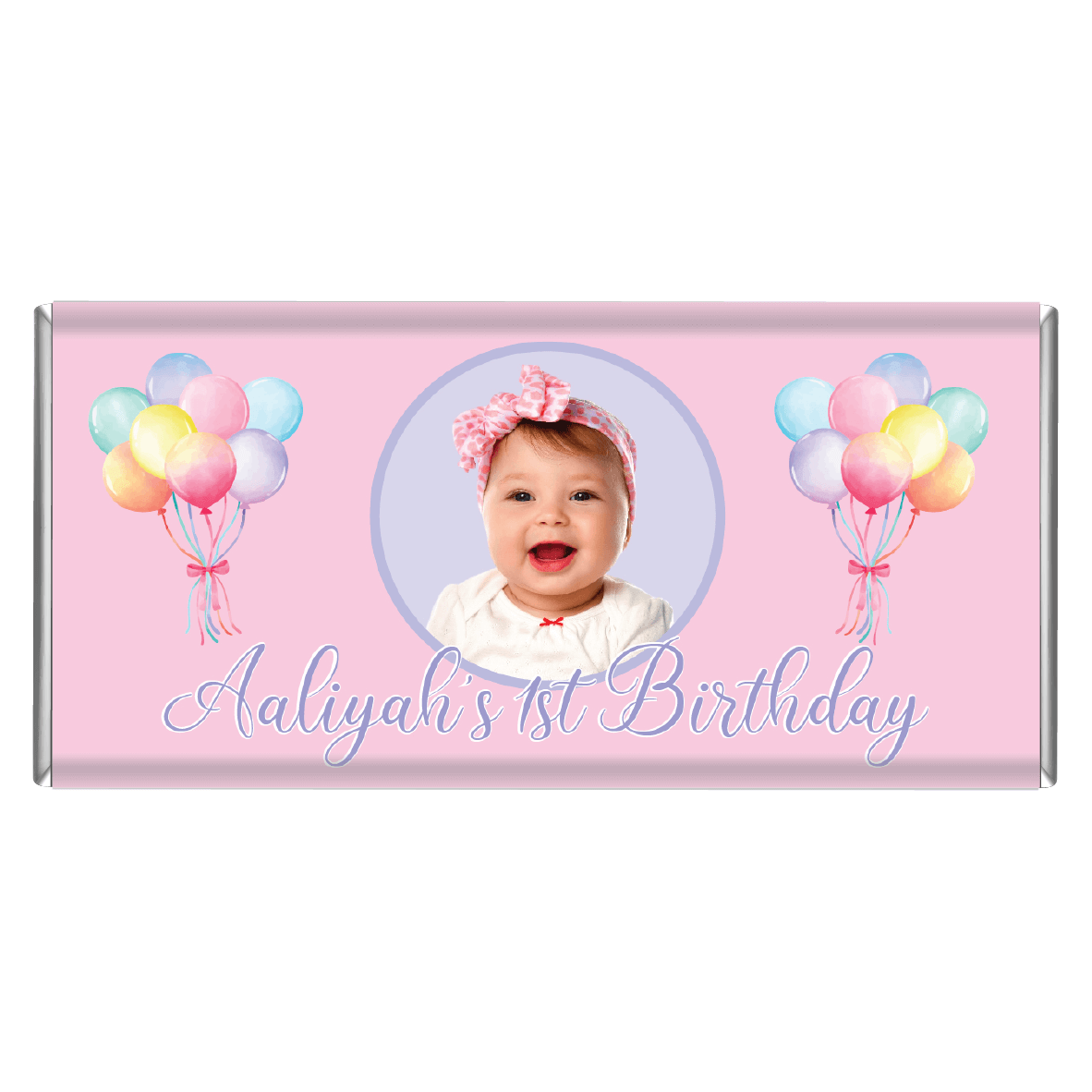 Pink & Pastel Balloons Custom Photo Chocolate Bar Favours