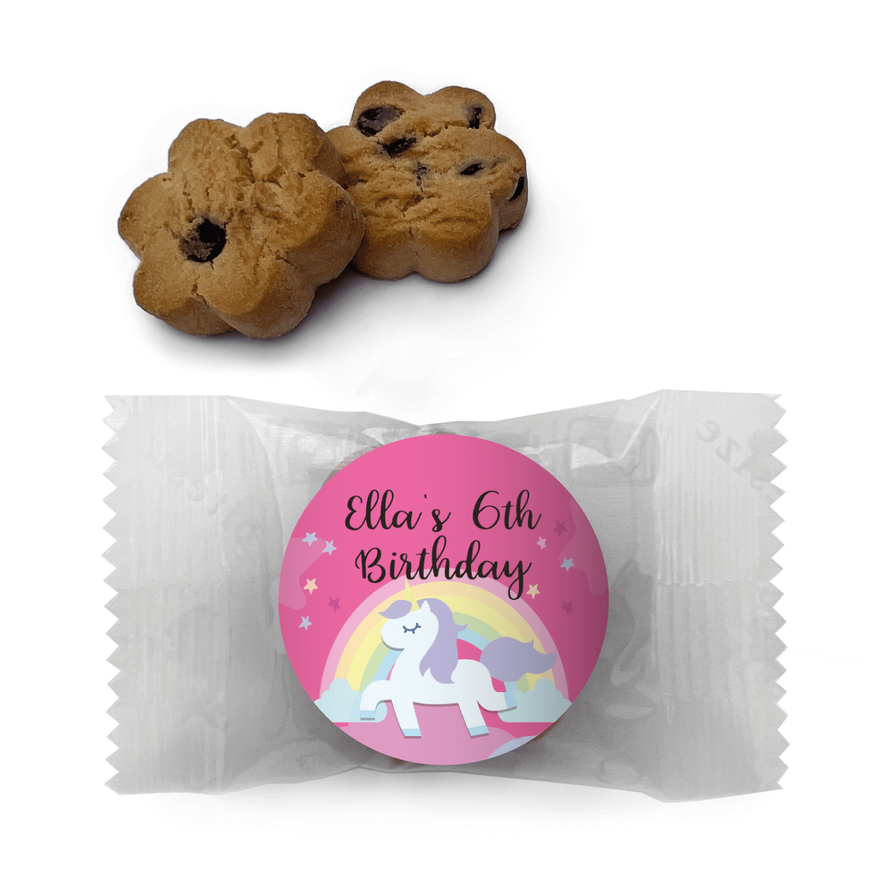 These personalised mini choc-chip cookie favours not only look fabulous but taste delicious too! Custom designed with your choice of wording. Beautifully packaged with your personalised label attached. 1 cookie per pack. Fast shipping Australia wide.