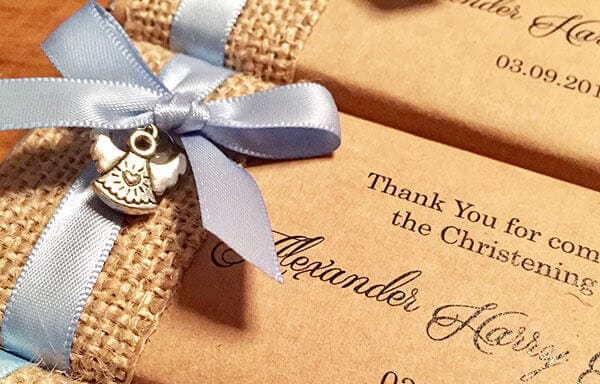 Make a gorgeous statement with these stunning premium rustic paper, ribbon and Angel Charm personalised chocolate favours which make beautiful favours and can even be made into unique place cards. You can also choose from a variety of ribbon colours to suit your theme.