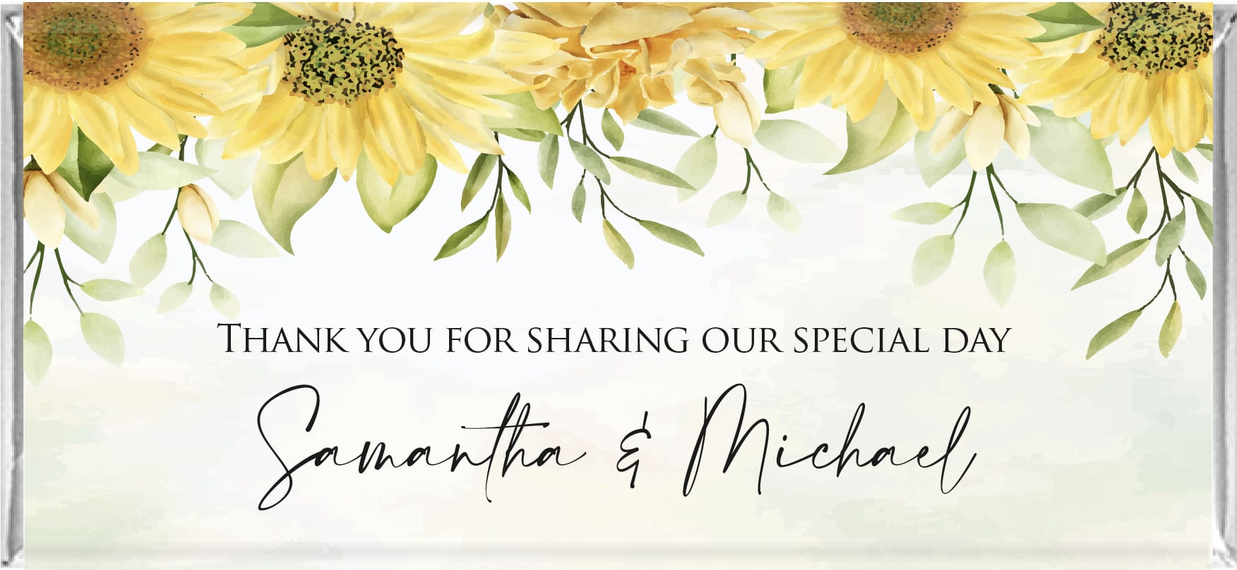 You can add any wording you like to the front and back of any of our chocolate bar designs. Your bars will be designed by a qualified graphic designer who will ensure they look absolutely perfect.
