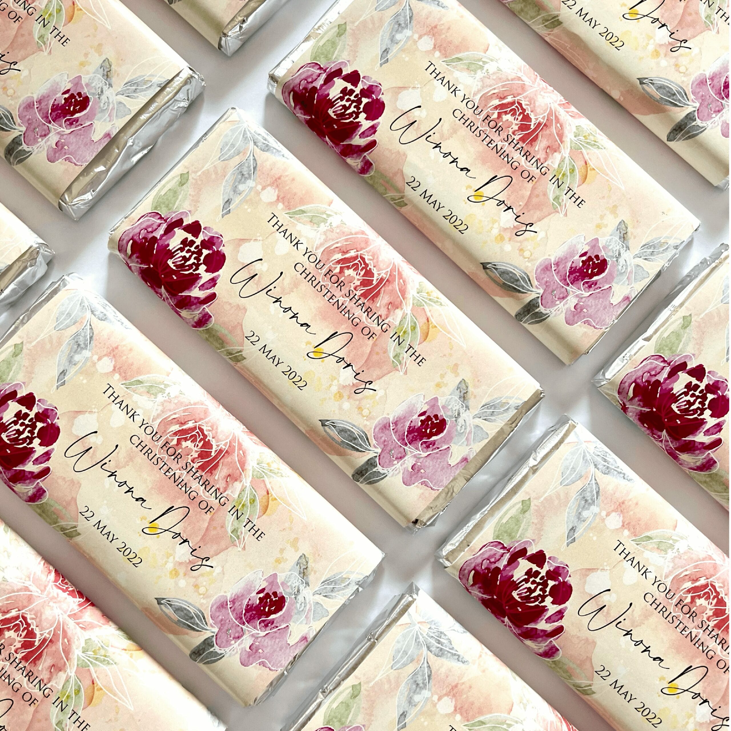 - Custom wrappers are professionally printed on superior quality gloss paper and carefully attached to your chocolate bars