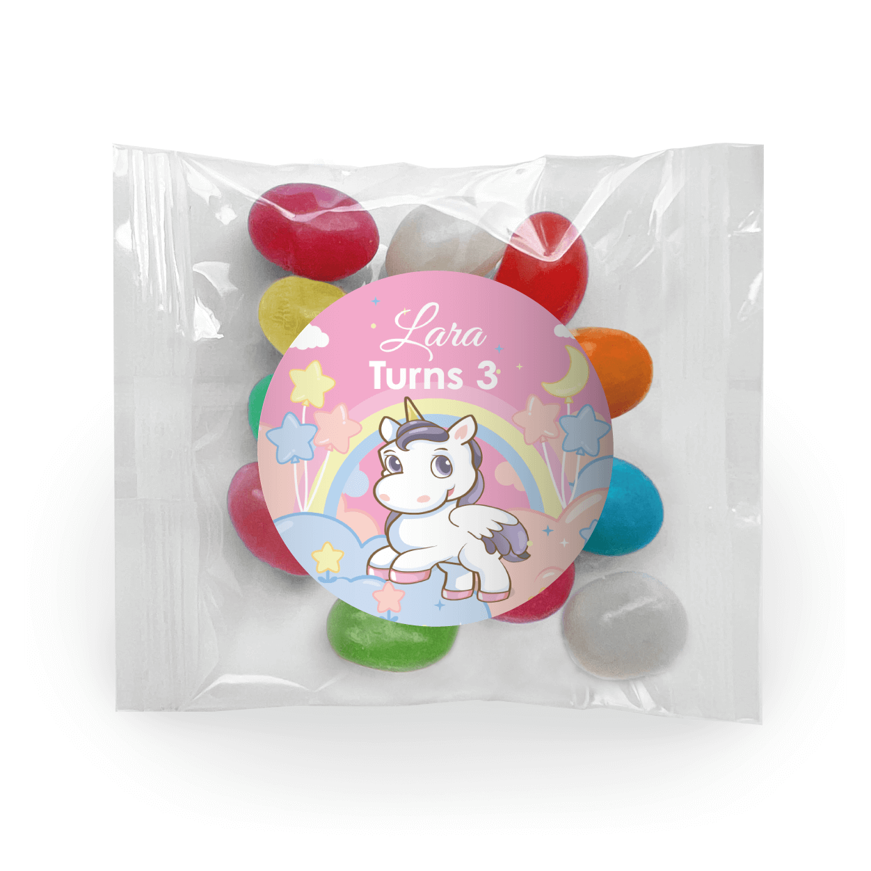 - 50g bags of delicious, premium quality mini Jelly Beans packaged in sealed clear bag