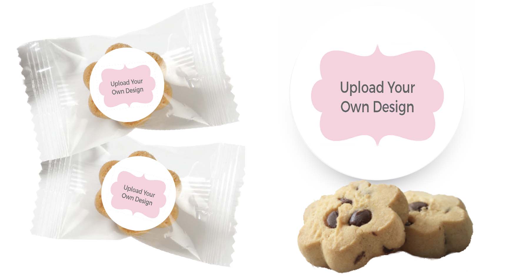 • Custom labels are professionally printed on quality gloss stickers & attached to your cookie packs