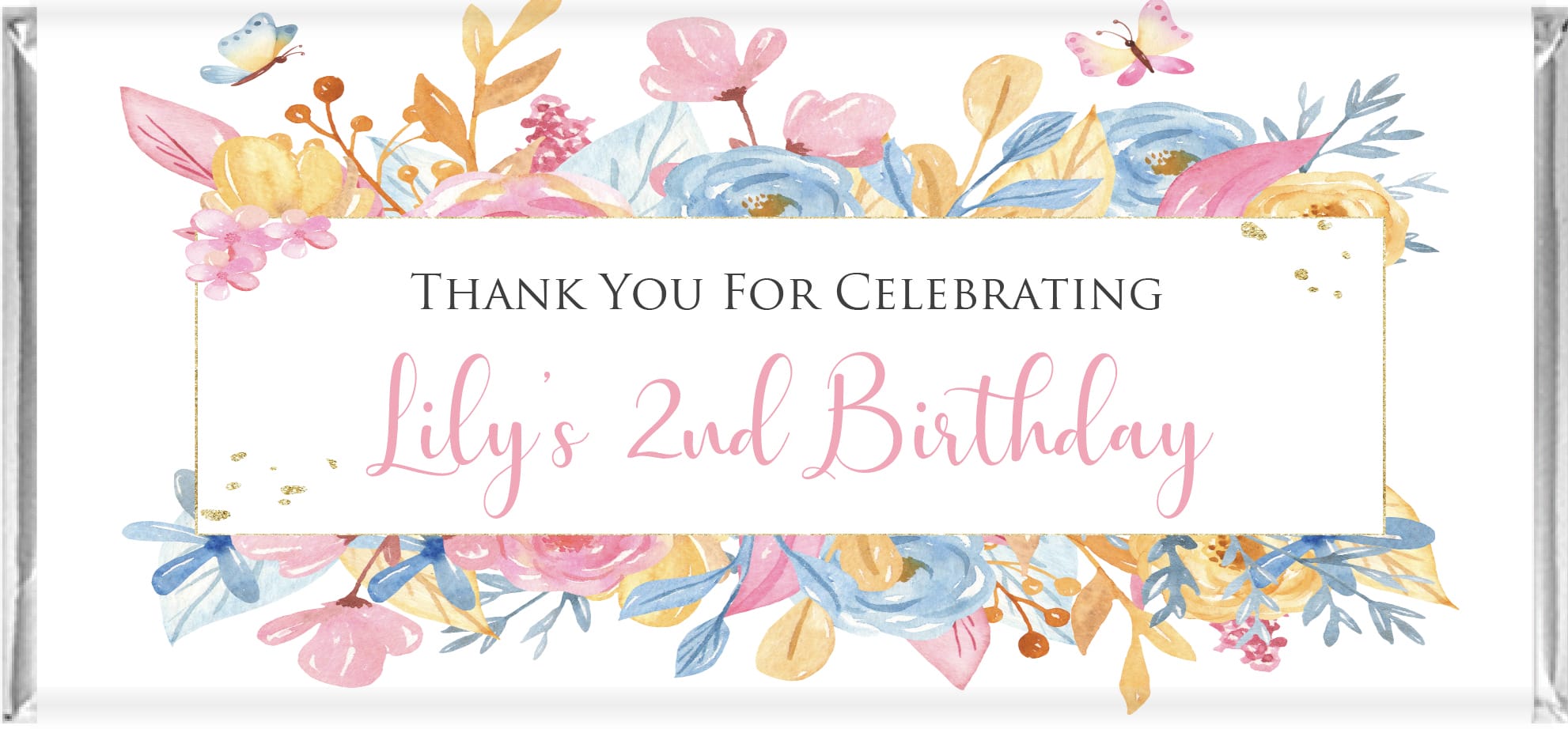 You can add any wording you like to the front and back of any of our chocolate bar designs. Your bars will be designed by a qualified graphic designer who will ensure they look absolutely perfect.